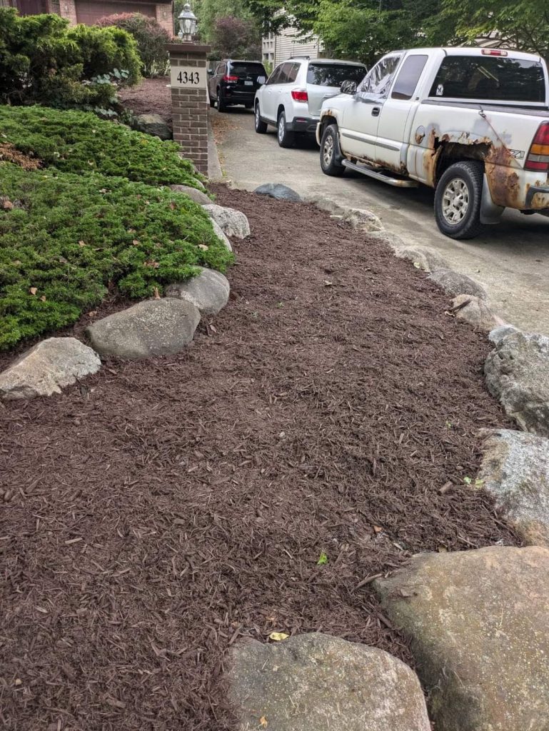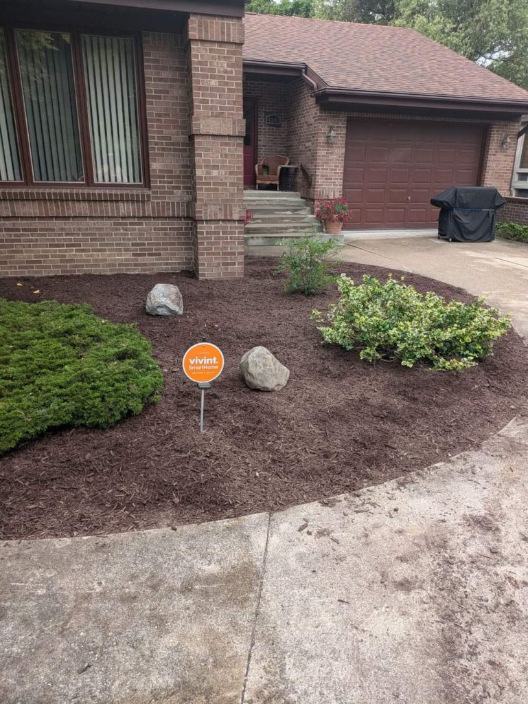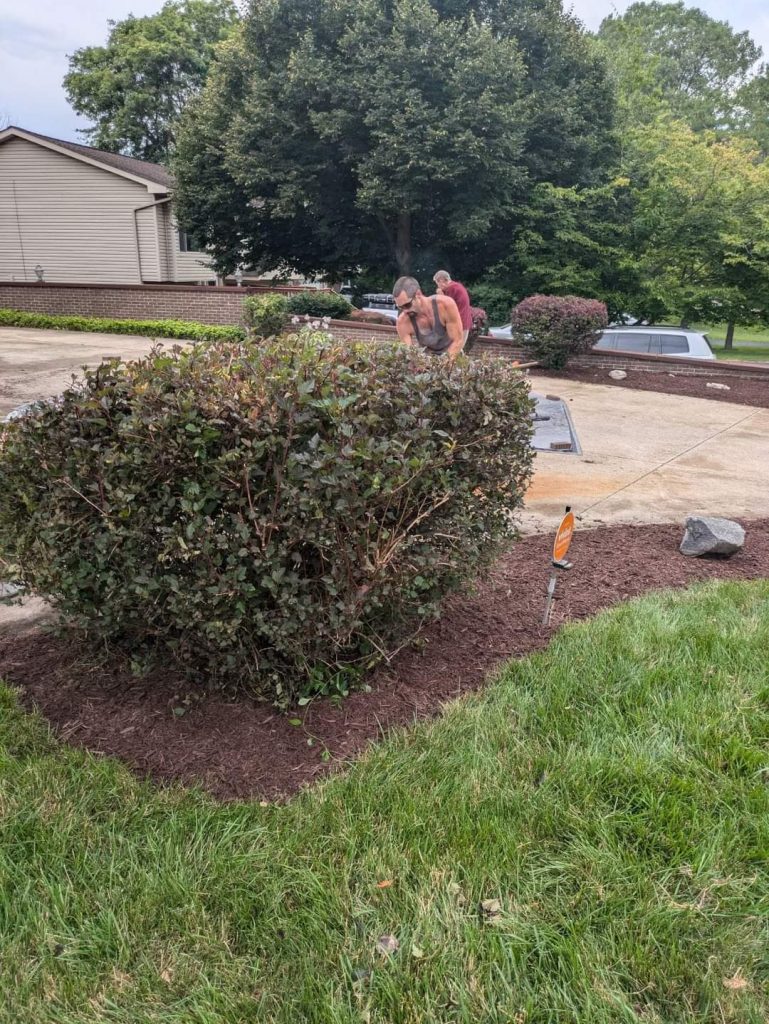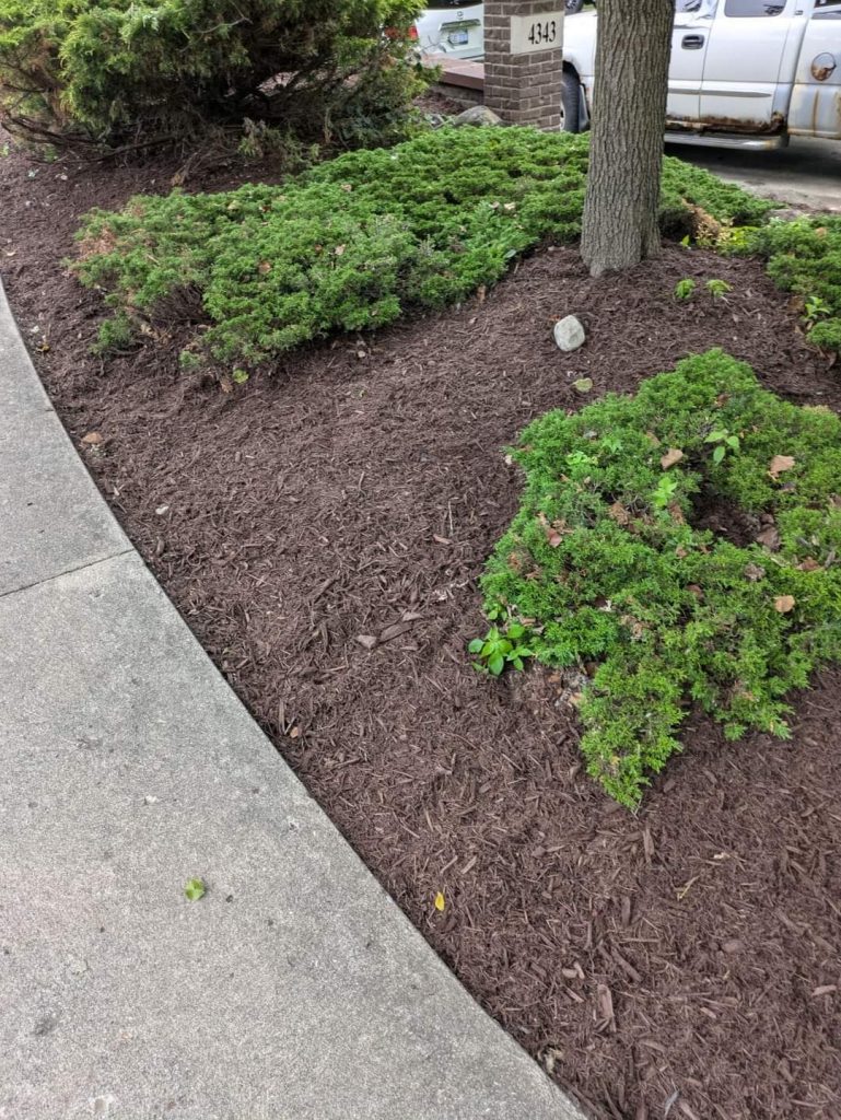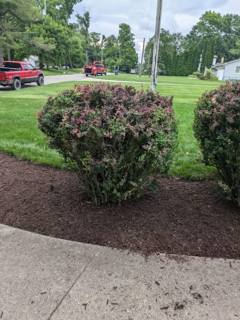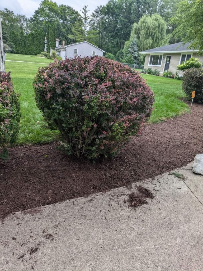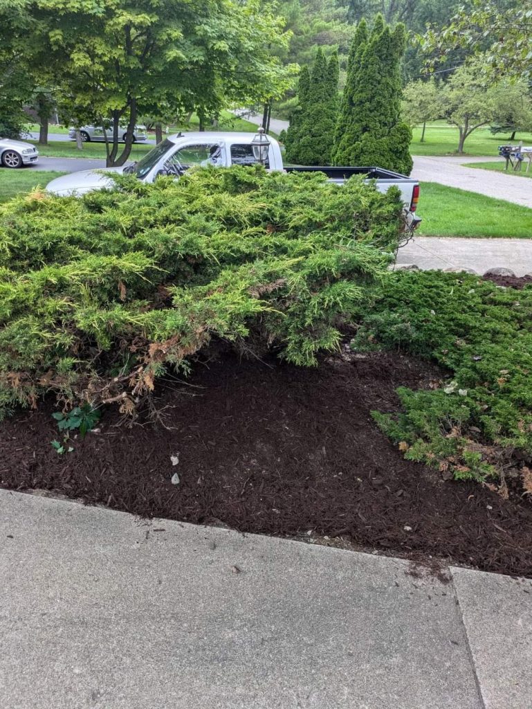 On July 16th, 2024 Shaped the Hedges and installed 6 yards of Brown Dyed Mulch