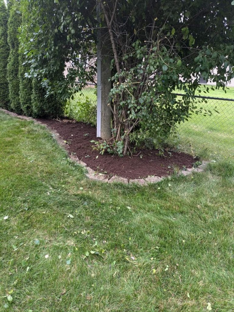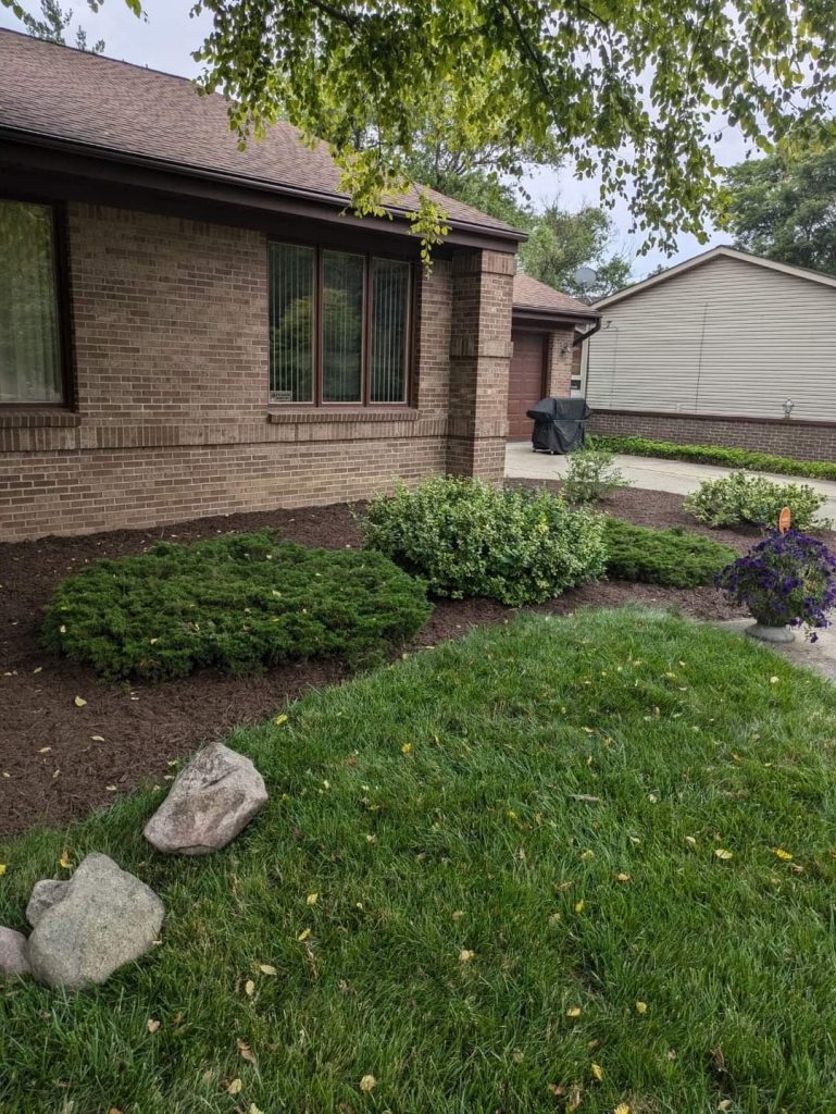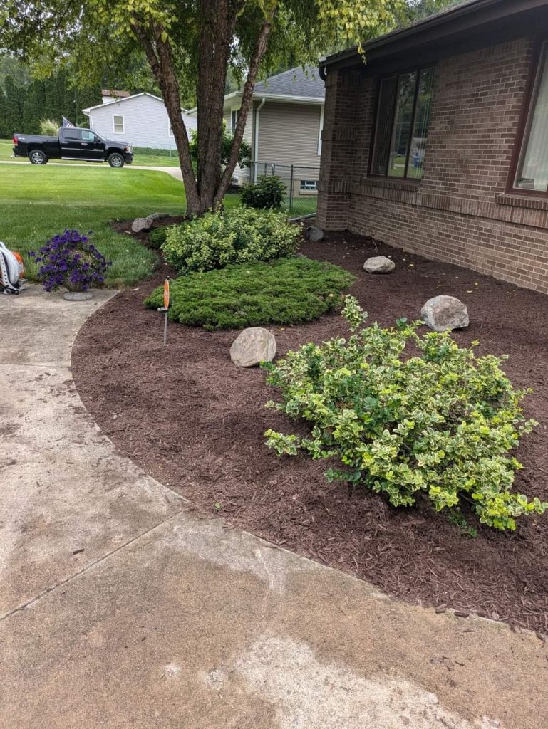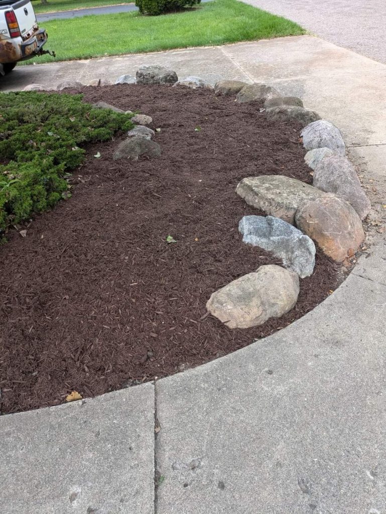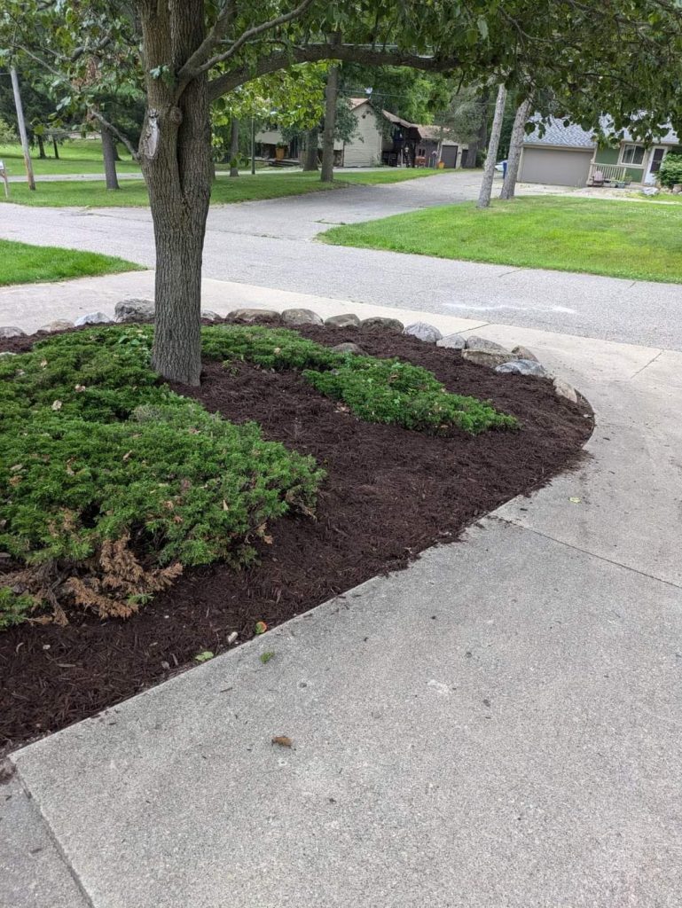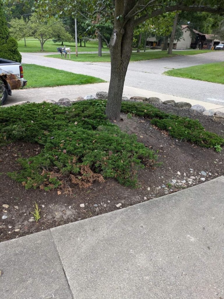 On July 16th, 2024 Shaped the Hedges and installed 6 yards of Brown Dyed Mulch