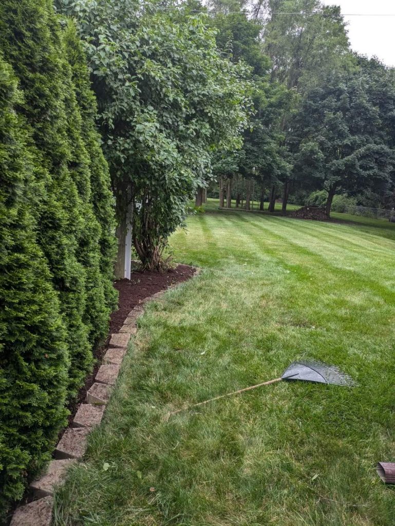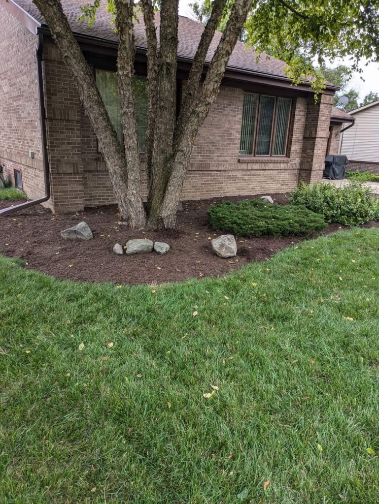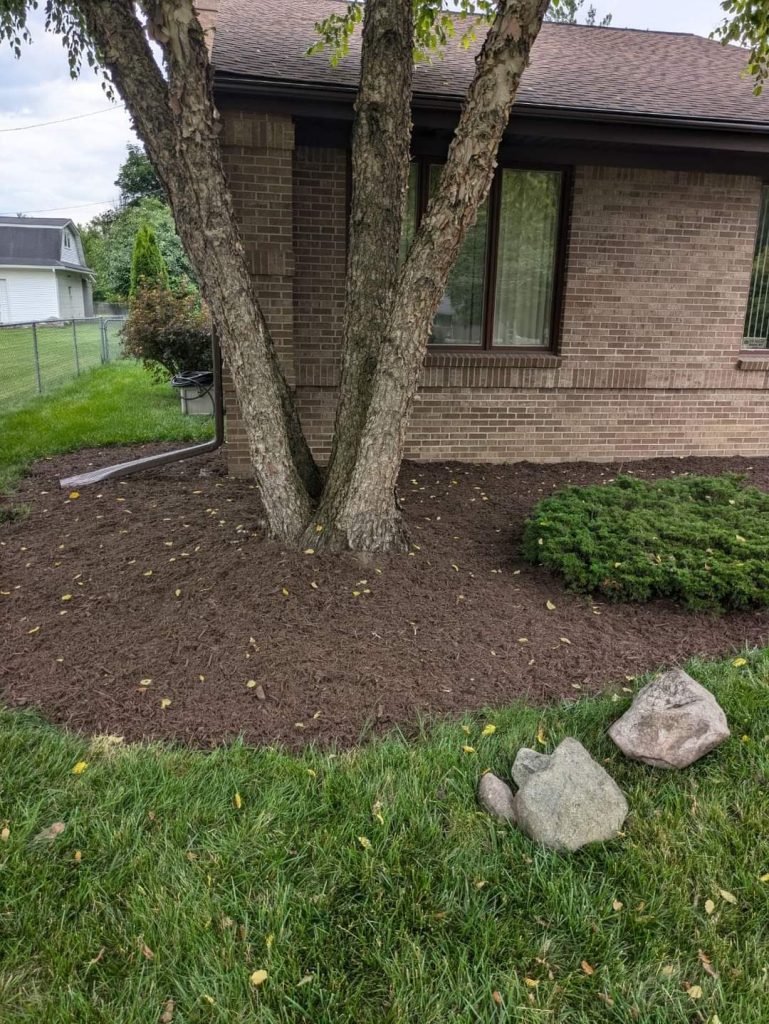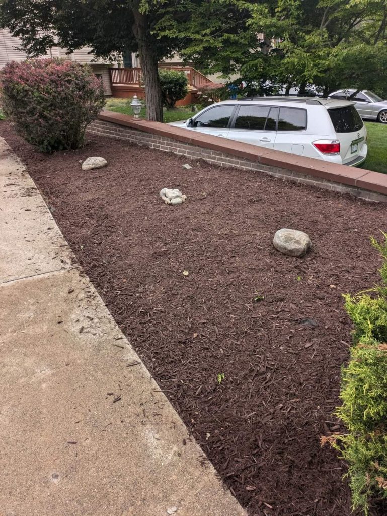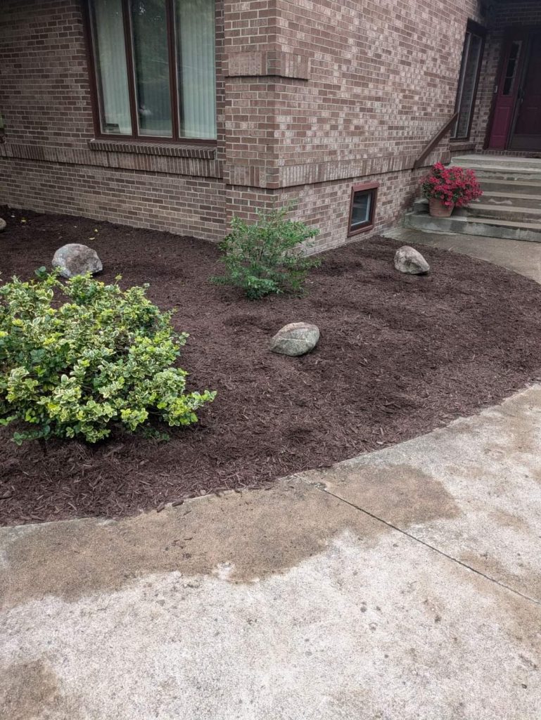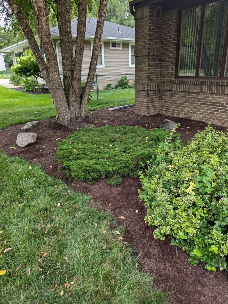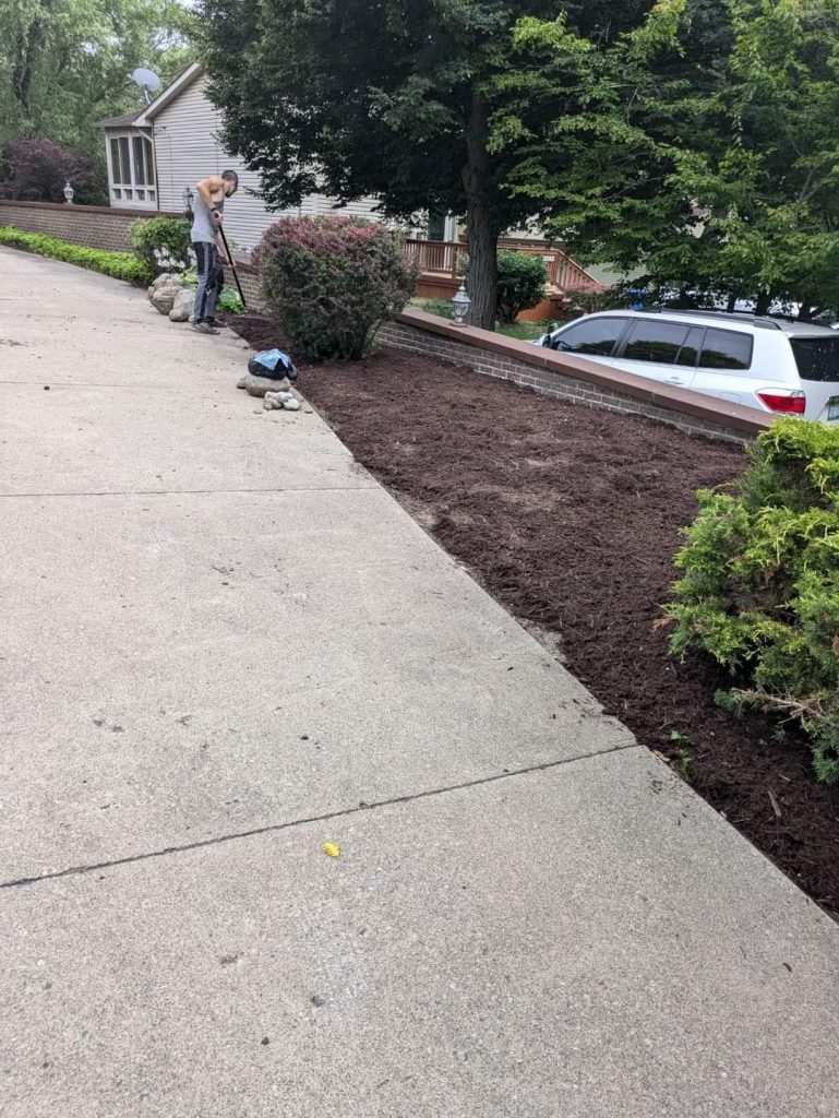On July 16th, 2024 Shaped the Hedges and installed 6 yards of Brown Dyed Mulch